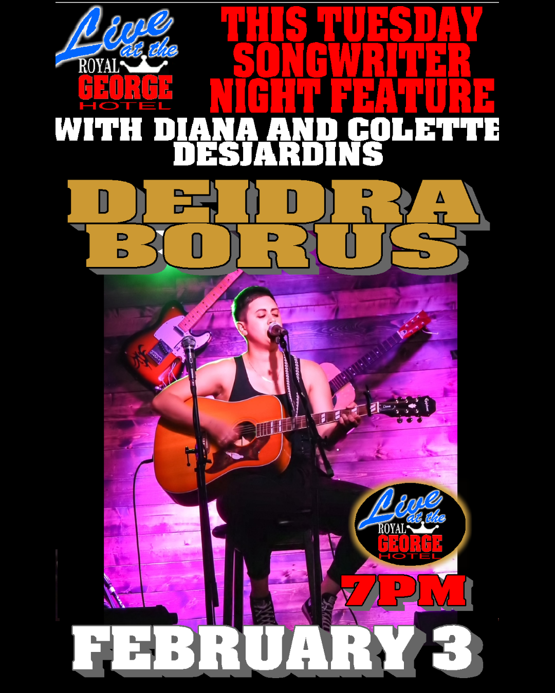 We are one of only a handful of venues in Canada to have live music 7 nights a week. We feature a variety of different styles and genres of music. Once known as a blues bar alongside the nostalgic Blue Note Cafe, The Royal George has expanded its acts to include Top 40, Country, Folk, and Rock.